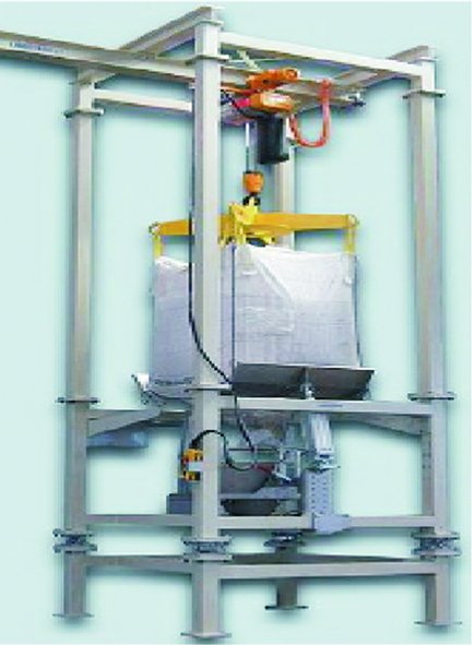 ·用电动葫芦或者叉车将吨包物料提升到拆包工位,半自动化工艺,降低操作人员的劳动强度;